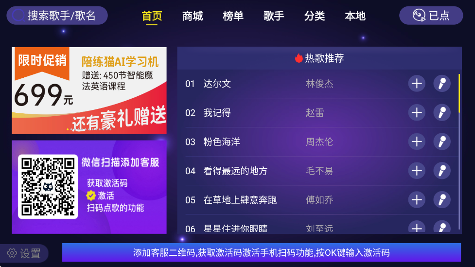 想在家体验专业KTV的欢乐氛围吗?家庭KTV应用能帮你轻松实现这个愿望。这款专为电视打造的k歌软件操作简单功能强大,内置海量热门金曲和最新音乐专辑,只需动动手指就能将客厅变成私人包厢。软件支持一键点歌、歌单管理、设备连接等功能,高清画质搭配无损音效,让你享受媲美线下KTV的沉浸式体验。无论是家庭聚会还是个人娱乐,这款软件都能带来无限乐趣,感兴趣的朋友快来试试吧。