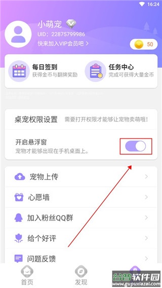 3、记得开启悬浮窗权限哦,这样宠物才会出现在桌面哦。