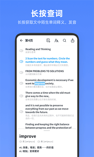 2、课文内容实现逐句翻译,点击任意单词即时显示释义。