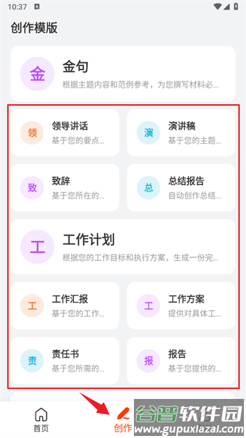 2、进入软件首页,点击开始创作按钮,跳转至写作界面。