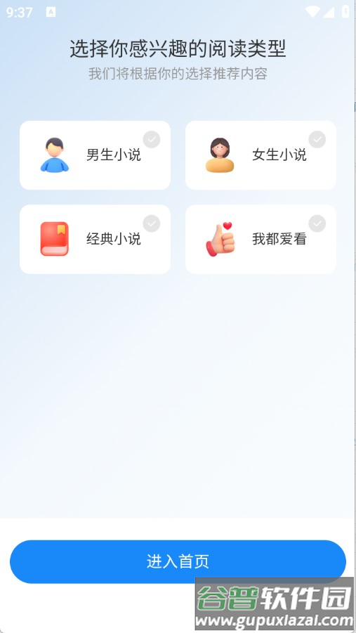 1、在本站下载辰思小说app,进入首页后选择你感兴趣的小说类型;