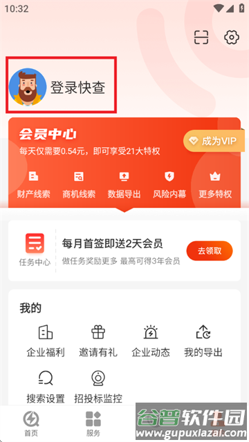 1、启动快查应用后,点击界面右下角“我的”入口;