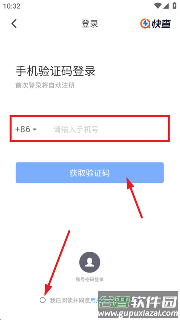 3、输入手机号码,点击获取验证码并填写即可完成登录;