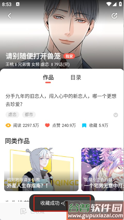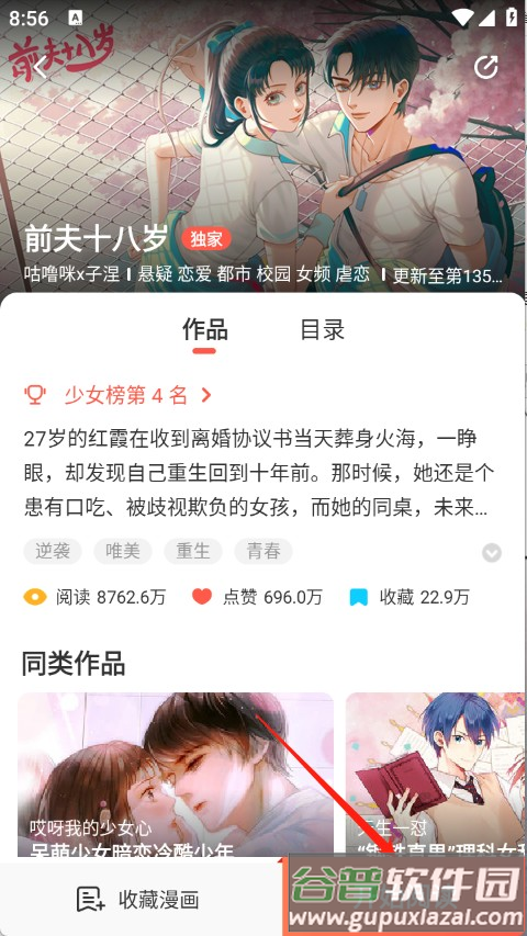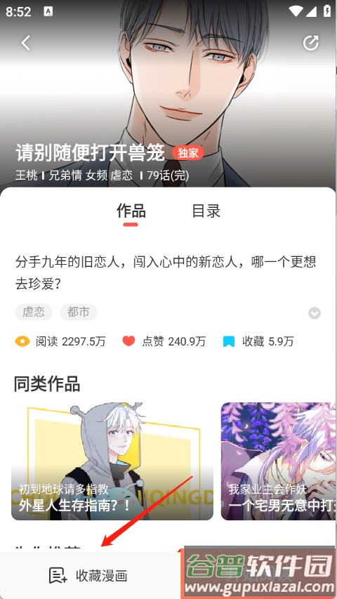1、进入漫画详情页面,点击收藏漫画按钮;