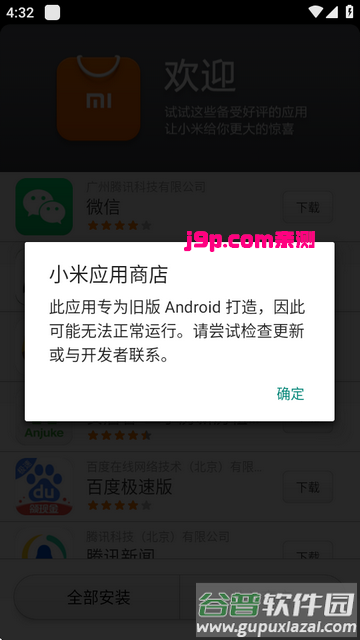 2.其他品牌手机可以安装本页面提供的旧版程序,首次启动时弹出提示框,点击确定按钮继续。