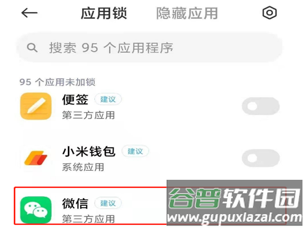 3.将需要加密的应用右侧开关启用,即可实现密码保护。
