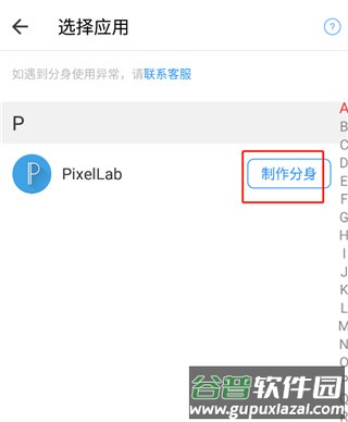 2、从应用列表中选择需要分身的软件,点击制作分身选项;