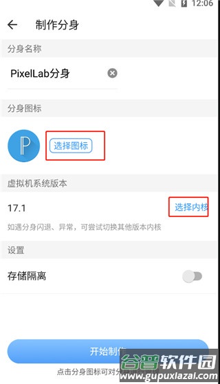 3、填写分身应用名称,选择喜欢的图标样式和系统内核,点击开始制作;