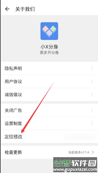 3、在关于我们界面找到定位修改功能,输入新位置信息即可完成设置。