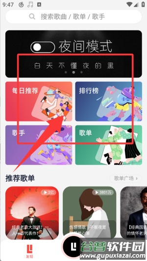 1、每天使用时应先浏览各类音乐分类,获取丰富的歌曲资源,为后续使用打好基础。