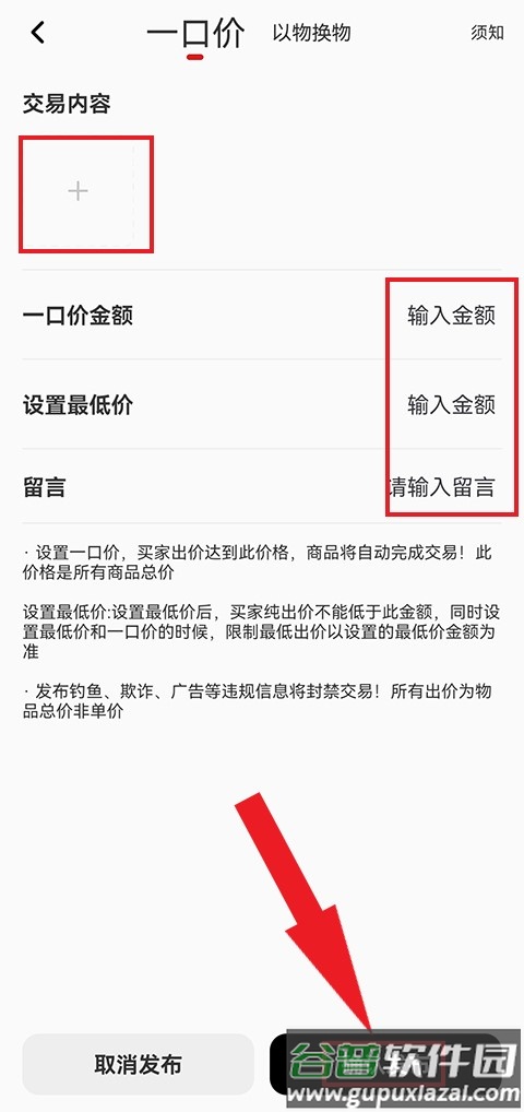 一口价即为直接标价出售,填写价格与商品信息后发布;