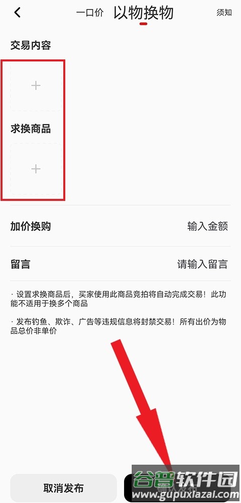 以物换物是用自己闲置物品换取所需商品,建议选择价值相近的物件,也支持补差价换购,确认后点击发布。