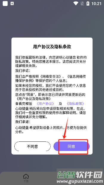 1、首次打开软件,需先阅读并同意隐私协议内容;