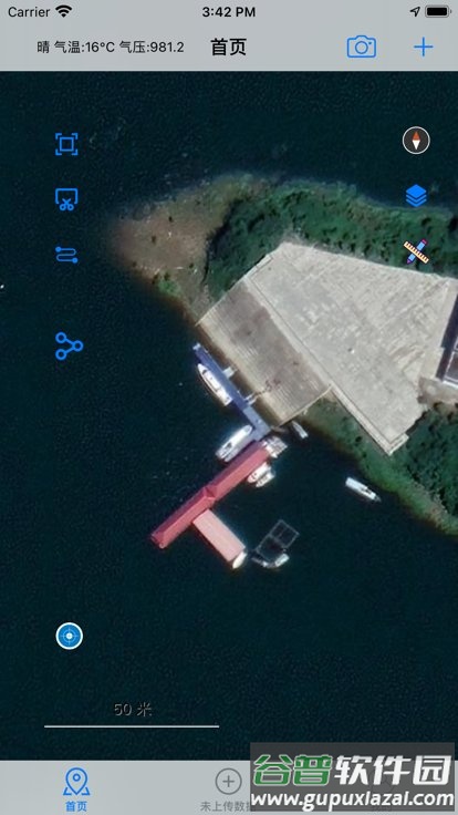 5.实时显示当前位置的气温、天气与气压数据,附带水域测量工具。