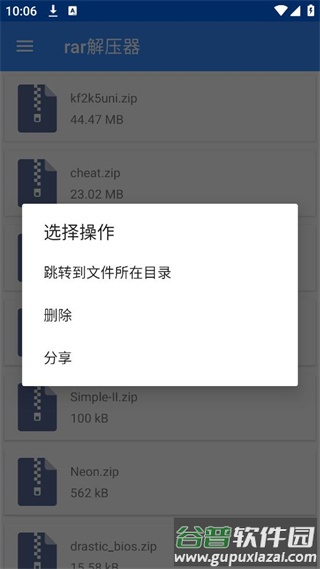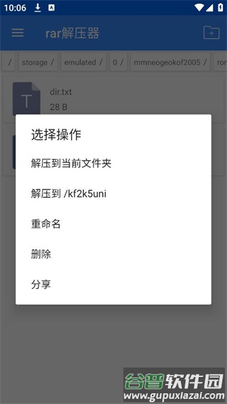4、在底部弹出的菜单中点击更多选项,选择rar解压功能即可完成操作。