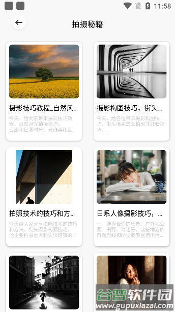 5、软件内提供多种摄影技巧指南,帮助用户提升拍摄水平。