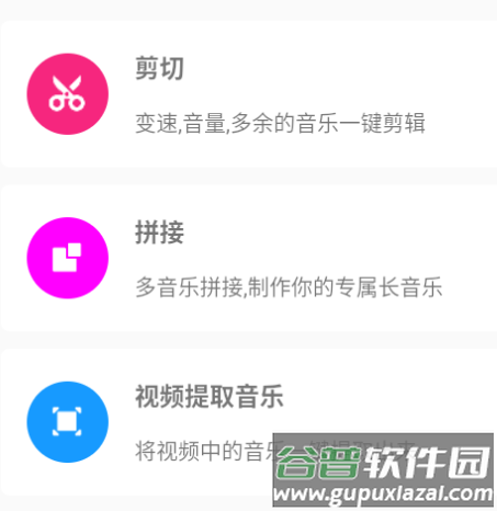 下载并打开语音剪辑助手应用,主界面提供剪切、合并等编辑功能。