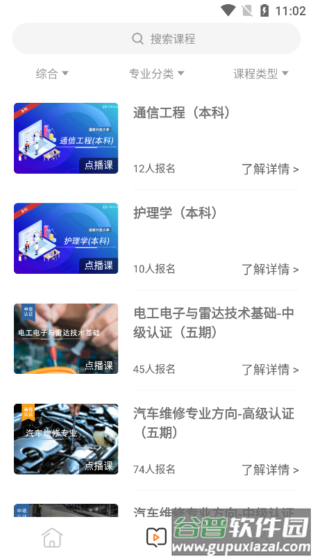 4、点击课程栏目,选择感兴趣的课程开始学习;