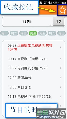 全屏播放时,点击屏幕右上角的五角星,颜色变化即可完成收藏。