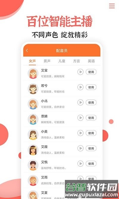 1、成品录音案例:数千条录制好的语音样本可直接导出使用,节省制作时间;