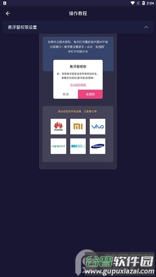 3、悬浮窗权限配置:若未预先授权,启动应用时会显示权限提示窗,点击授权引导并开启对应开关即可。