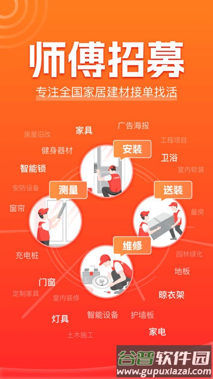 3、师傅资源丰富:平台签约超过10万名专业师傅,服务范围覆盖家具、灯具、卫浴、晾衣架、窗帘等九大类家居建材产品;