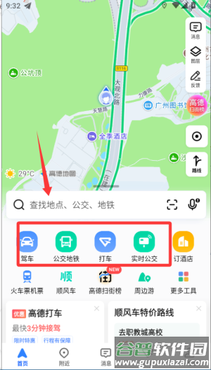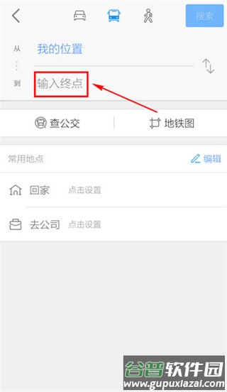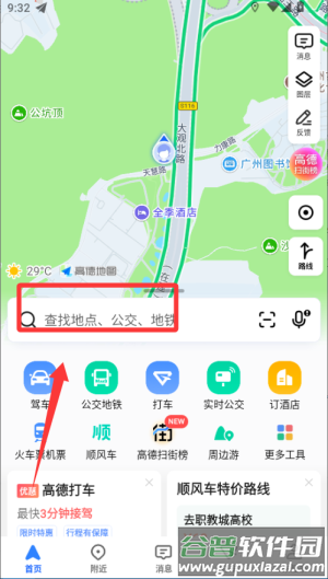 下载安装最新版本应用,进入主界面后点击搜索栏输入目标地点。