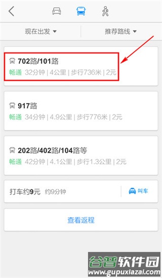 2.根据需求选择出行模式,比如驾车或公共交通,系统会提供多条推荐路线,挑选最适合的路径。