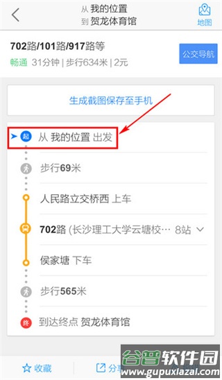 2.系统展示路线详情,点击从我的位置出发可查看完整路线图