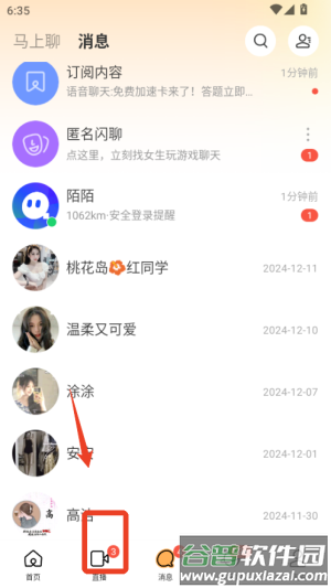 1、启动陌陌应用后允许定位权限,系统会立即展示附近用户,上下滑动浏览个人简介,轻点头像就能发送问候消息。