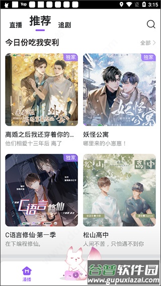 ① 打开漫播应用,进入右下角“自己”页面;