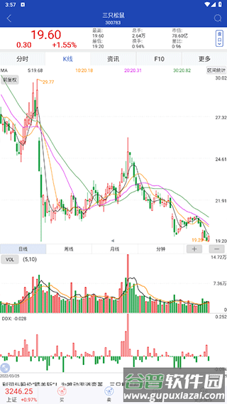 4、添加后可使用K线、报价、F10、资讯等工具进行个股分析。