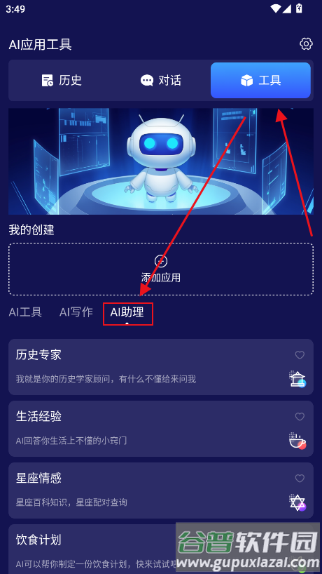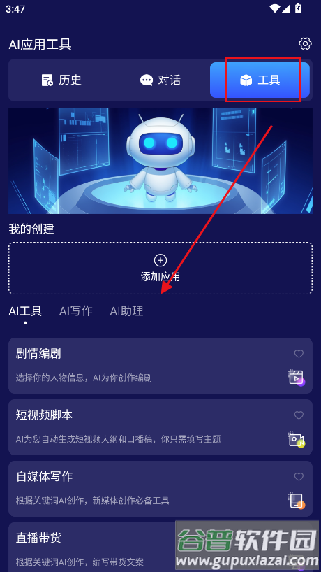 3、工具页提供AI写作、AI助理等多种实用功能;