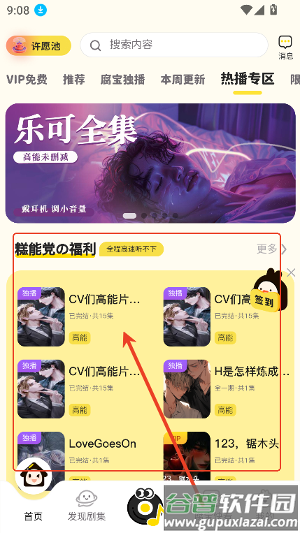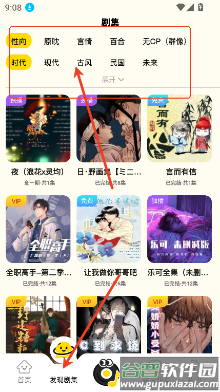 3、找到“发现剧集”板块,能够根据类型进行筛选;