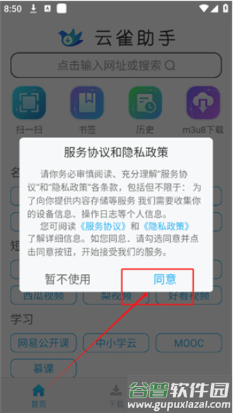 2. 首次使用时需要点击同意隐私政策,保证使用过程符合规范;