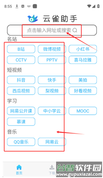 3. 在搜索框输入网址,或直接点击下方平台入口进入资源页面;