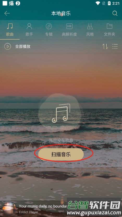 3、点击开始扫描按钮,软件将自动扫描并导入手机存储中的本地音乐文件。