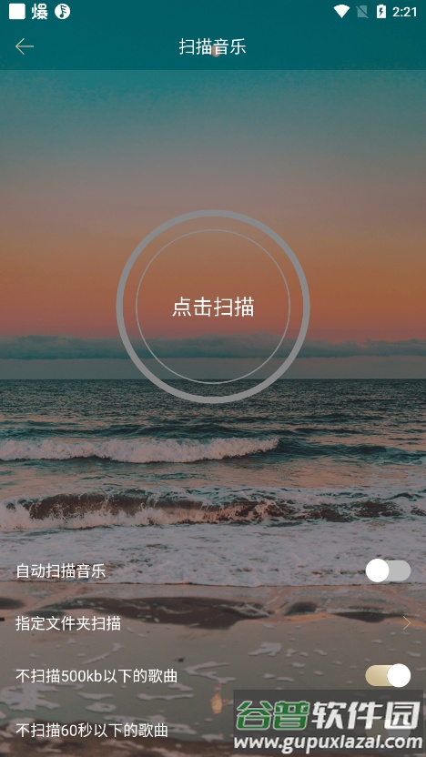 2、进入后点击“扫描音乐”功能,进入扫描设置界面。
