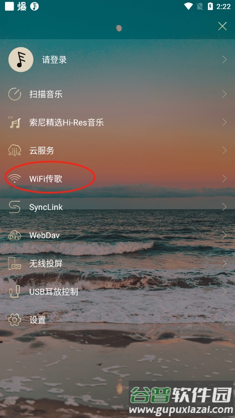 2、在菜单栏中选择“WiFi传歌”功能选项。
