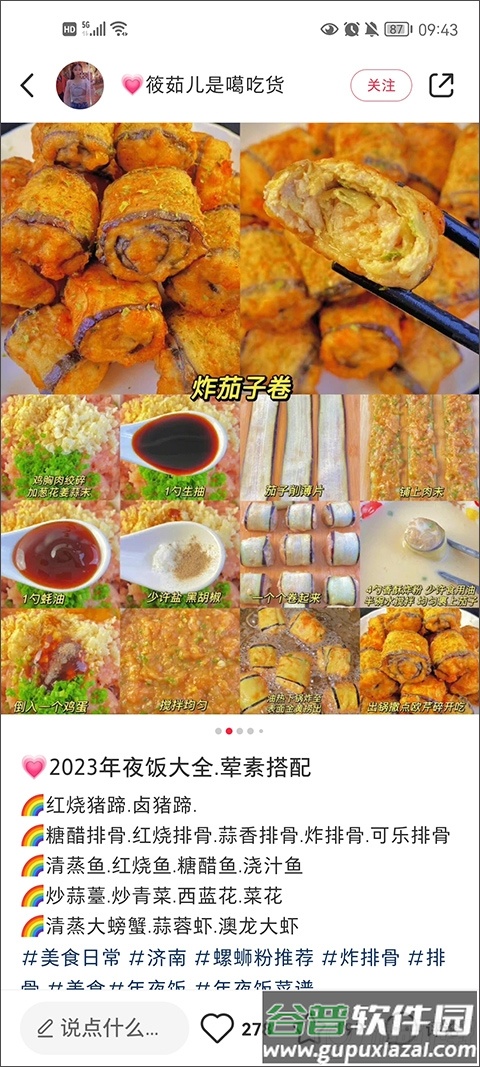 2、进入软件主界面,点击上方的“美食”分类;即可浏览大量美食分享,也可点击右上角搜索特定菜品。
