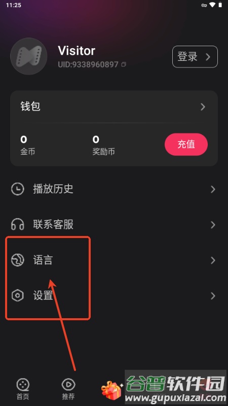 3、在设置菜单中,选择“语言”进行修改;