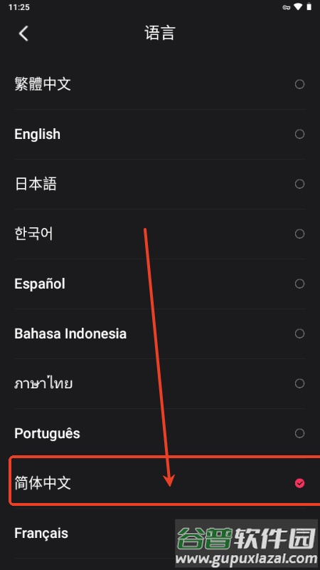 4、在语言列表里点击“简体中文”;