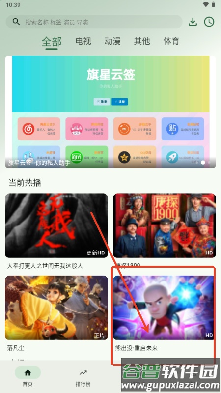1、首先在首页选择自己感兴趣的影视节目;