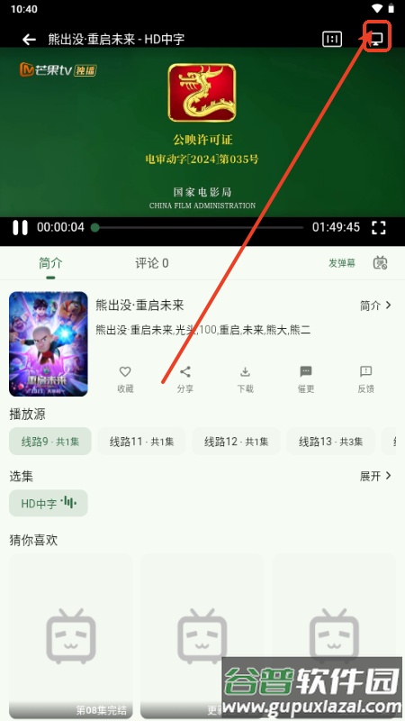 3、播放界面设有TV投屏按钮,可将内容投射到电视大屏上播放。