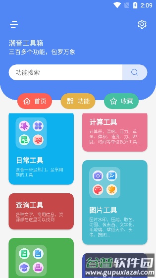 1、工具种类齐全:软件提供日常工具、图片工具、查询工具、设备工具等多种类型;具体包括计算器、记事本、倒计时、手电筒、指南针、二维码生成与扫描、手机加速、CPU降温、权限管理、音频提取、视频转码、图片识别等功能,还支持全网音乐搜索与下载。
