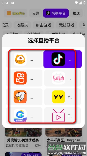 2、在弹出的平台列表中点击你想观看的那个平台即可进入。