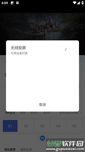 4、点击右上角的TV图标,搜索可用的投屏设备,即可进行投屏观看。