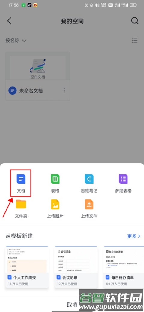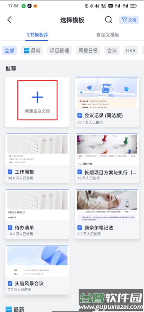 3. 最后点击“新建空白文档”或选用其他提供的模板即可完成创建。