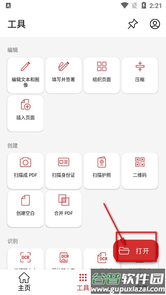 1、安装后打开应用,点击右下角打开按钮选择PDF文档;