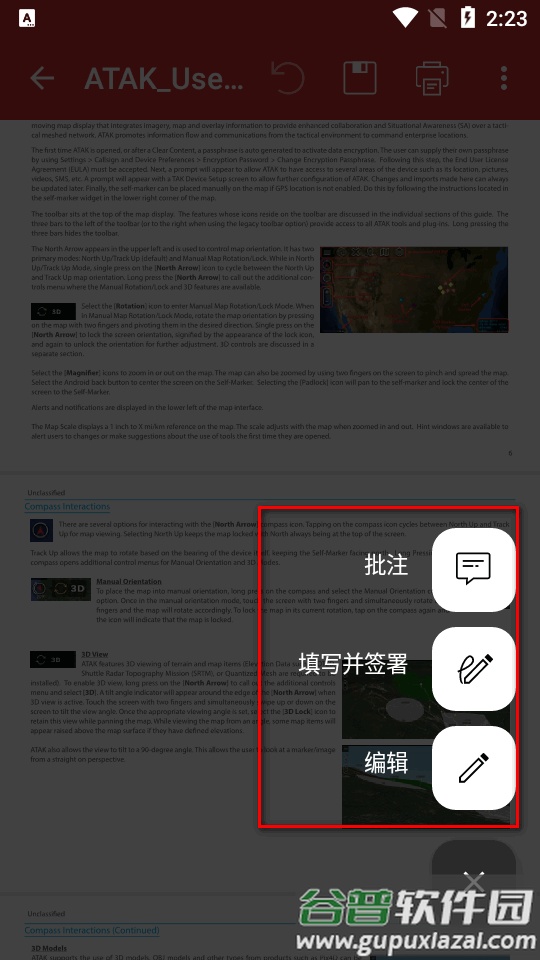 3、菜单提供批注、填写签名和编辑三个主要功能,点击编辑;